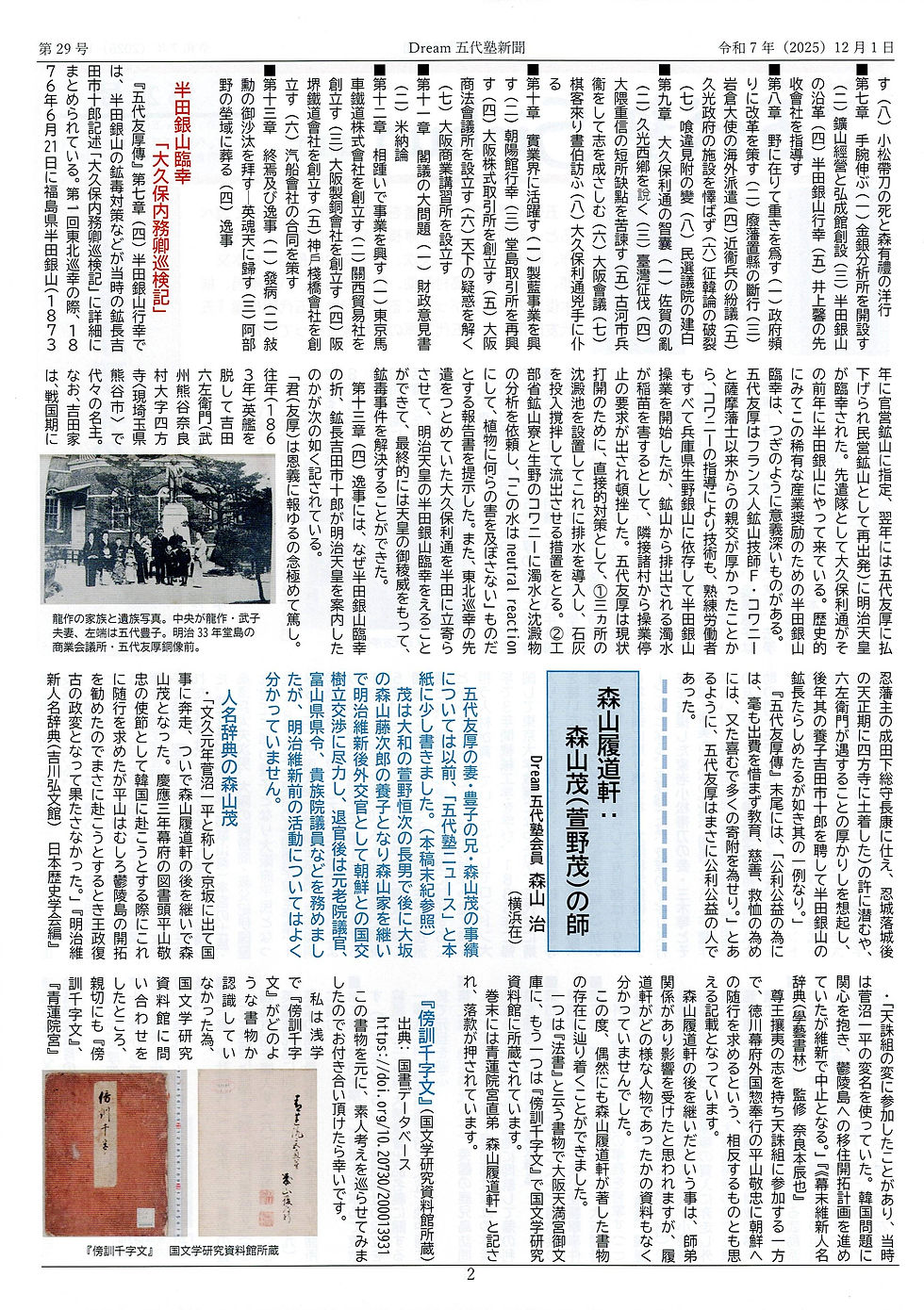 Dream五代塾Sinbun 第29号(2025年12月1日発行)